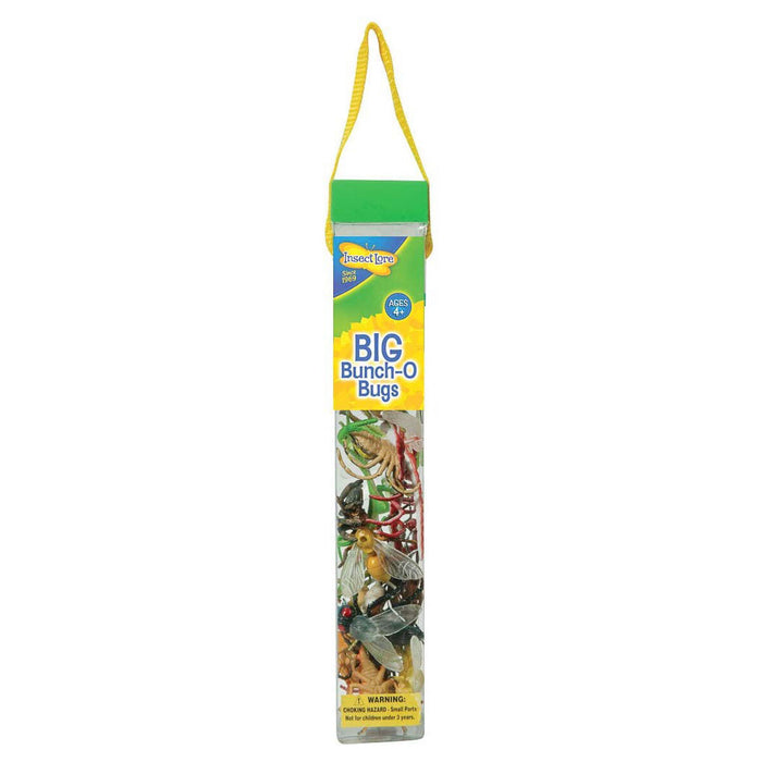 Young insect lovers will treasure the Big Bunch O' Bugs anatomically detailed butterflies. insects and arachnids. Includes 18 giant-sized beetles, flies, spiders and much more. These colourfully detailed bugs are made of sturdy, flexible plastic and are a great teaching tool. So realistic, you won’t want to leave these creepy crawlies in unexpected places! Big Bunch ‘O Bugs come in a resealable tube that doubles as a storage container.