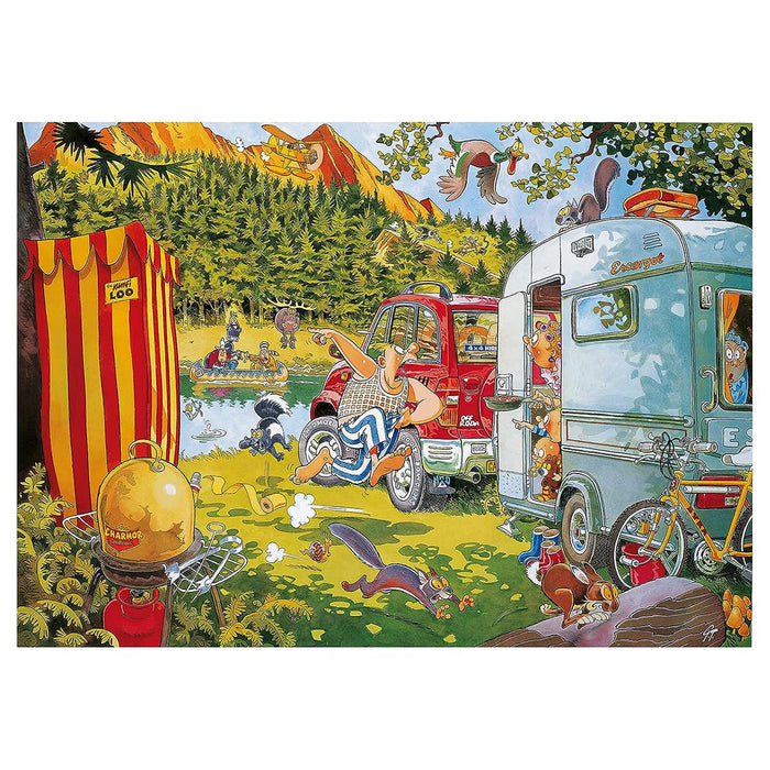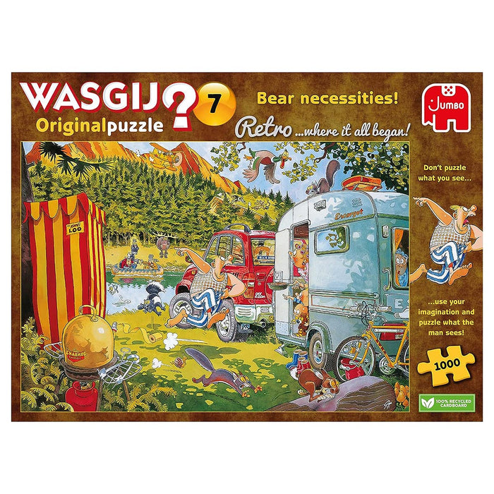 Wasgij is a unique puzzle concept that tests even the most enthusiastic puzzlers. With traditional jigsaws, the goal is to build the exact image shown on the box, but with Wasgij you must create an entirely different picture. Wasgij Original is the ‘what are they looking at?’ puzzle concept where you have to use your imagination and the clues provided to piece together what the characters in the image printed on the box are looking at. It's a beautiful morning at this tranquil lakeside camp, our campers are waking up, and mum's got breakfast on the go. But something’s caused Dad to cut short the call of nature! Try to imagine you are the concerned canoeists; what wildness did they just bear witness to? That is the image you need to puzzle.
