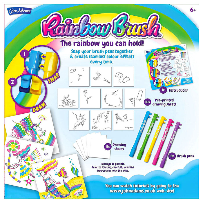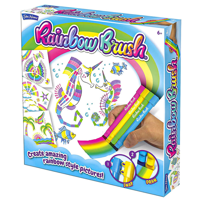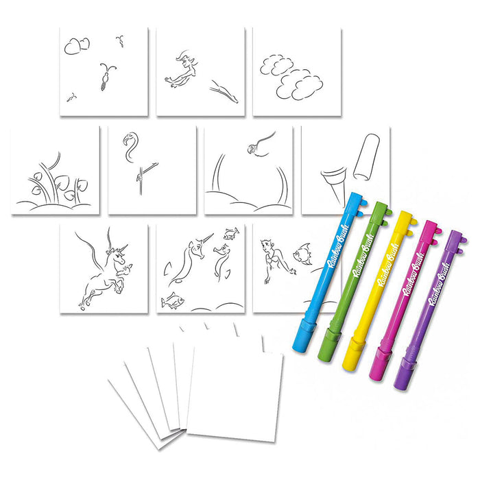 With the Rainbow Brush Letter Studio you can create beautiful letters and pictures. The brush pens easily snap together and create seamless rainbow colour effects every time. Look for the online special tutorials and learn how to draw each beautiful letter!