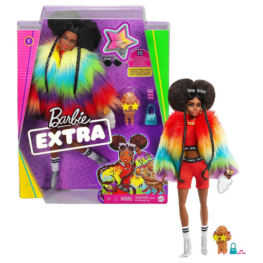Barbie Extra Doll #1 in Rainbow Coat with Pet Poodle