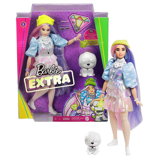 in stock• Barbie Extra Doll #2 in Shimmery Look with Pet Puppy has a ‘more is more’ attitude and rocks her own unique style that's playful and over-the...