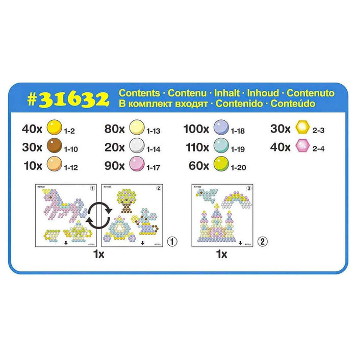• Make a unicorn, castle, carriage, and even a mouse wizard with the Aquabeads Pastel Fairy Tale Set.