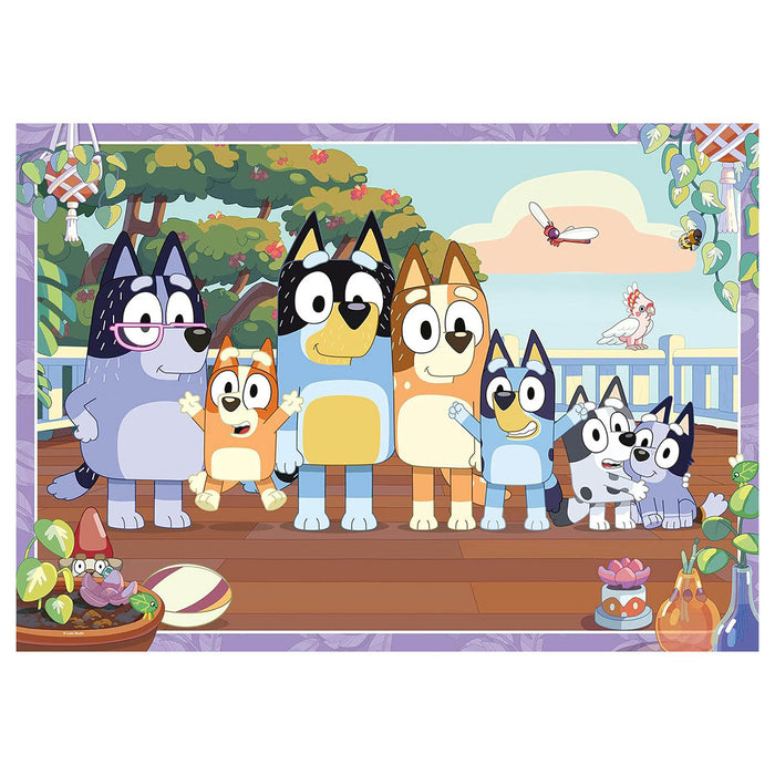 Say g'day to Bluey and her family on this fun and colourful giant floor puzzle. Nana, Bingo, Bluey, Chilli (Mum), Bandit (Dad), Muffin and Socks strike a happy pose in a colourful garden scene. A must for any Bluey fan!