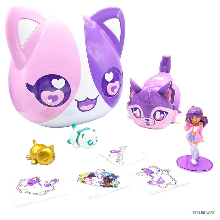 Discover one exclusive 4” collectable Aphmau Animated Figure inside, inspired directly from the official Aphmau content and only available in this set! (3 different variants to collect!) The set is contained within a 10” catface case that can double as a large collectable or carrying case for all of your Aphmau collection! This mystery unboxing experience includes 8 amazing surprise toys for you to discover including the exclusive collectible Aphmau figure, new plush MeeMeows, exclusive MeeMeow figures, squishies, and stickers!