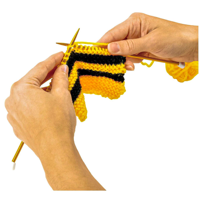 With the Galt First Knitting kit you can create a knitted bumblebee, pompom bunting, cuddly octopus and pompom keychain using the french knitter, knitting needles and pompom tool. Learn to knit using the detailed step-by-step guide and decorate with fabulous beads, felt details and sew on wiggly eyes!