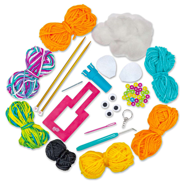 • Create a knitted octopus, bumble bee, pom pom bunting and keyring with the First Knitting kit.