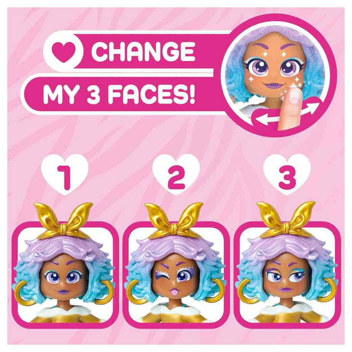 • She has 3 different expressions which can change with just one click.