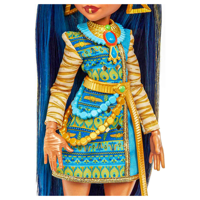 • Monster High Cleo De Nile Doll is strutting the hallways in scream-tastic style.