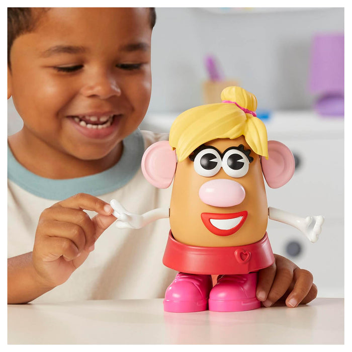 Discover lots of mixed and mashed up tots-ibilities with this Mrs. Potato Head set! Little ones will love dreaming up wacky creations with the potato body and 11 Mrs. Potato Head parts and pieces, including eyes, ears, nose, mouth, arms, skirt, shoes, and hair. The accessories are designed just for little hands, so they can be easily rearranged again and again to make mixed-up faces! When playtime is over, keep all the pieces together using the convenient tater tush storage compartment! Accessories are compatible with most Potato Head toys (each sold separately).