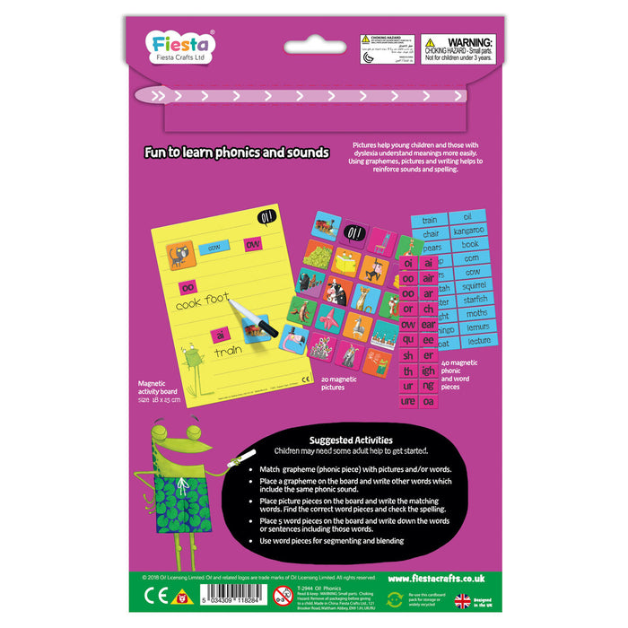 Oi! Top selling and award-winning range of children’s books have now branched out with this exciting activity toy! Oi! Magnetic phonics helps children to learn about phonics and sounds as they match phonics with pictures and words. Using the 60 magnetic pieces, children will develop their literacy skills as they complete the activities suggested on the back of the pack. Oi! Frog, Oi! Dog and more have been hugely popular with children and teachers as the books, a publishing sales phenomenon aimed at young children, combine hilarious rhymes and gorgeous pictures. Oi! Magnetic phonics contains a board and pen as well as 20 magnetic picture pieces, and 40 magnetic phonic and word pieces.