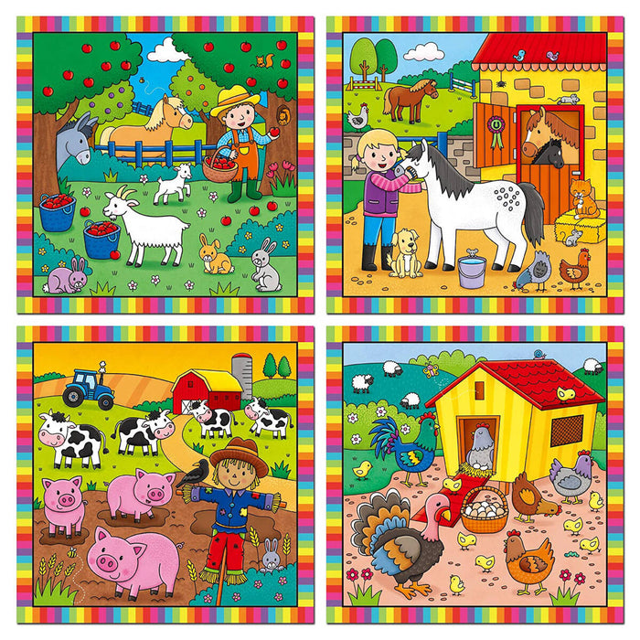 First Water Magic Baby Farm Animals colouring book includes 4 reusable picture boards on a sturdy loop with chunky water pen. Fill the pen with water and 'paint' over the picture to reveal the hidden colours of the baby farm animals. The coloured pictures magically appear and then disappear so children can enjoy colouring in, over and over again. Ideal for travel. Store water pen in holder on front page.