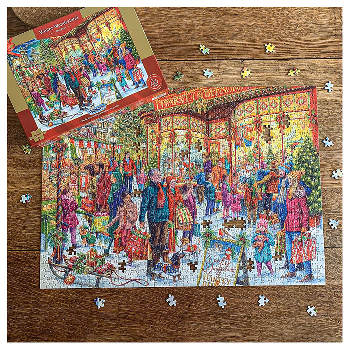 • You can almost smell the cinnamon and ginger of the mince pie stall in the Christmas Winter Wonderland 1000 Piece Jigsaw Puzzle!