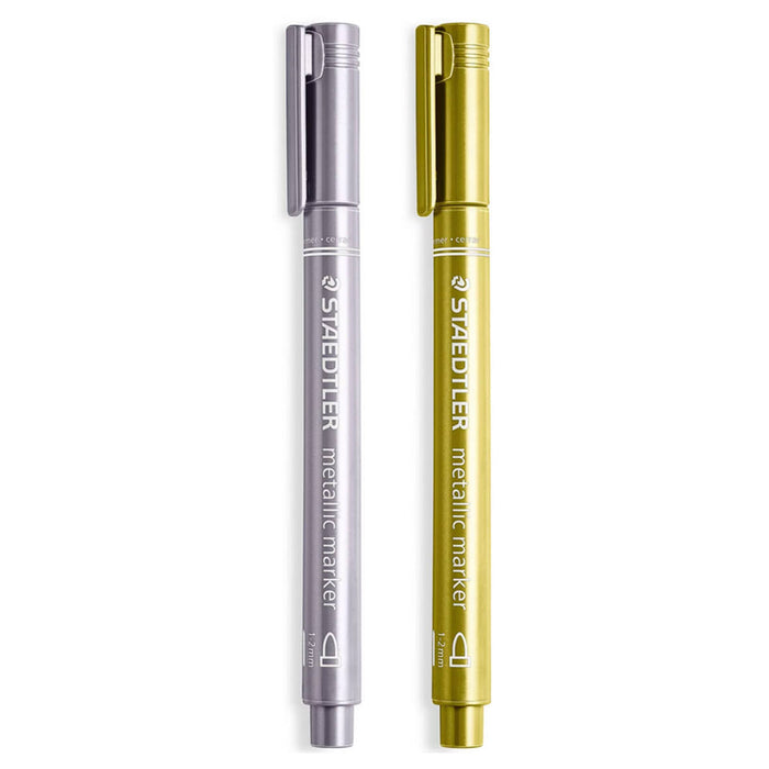 The Staedtler Metallic Marker Pen is ideal for scrapbooking and greeting cards. Featuring a bullet tip and a line width of approx 1-2mm. The markers can be used on paper and card and can be easily wiped off smooth surfaces using a damp cloth.