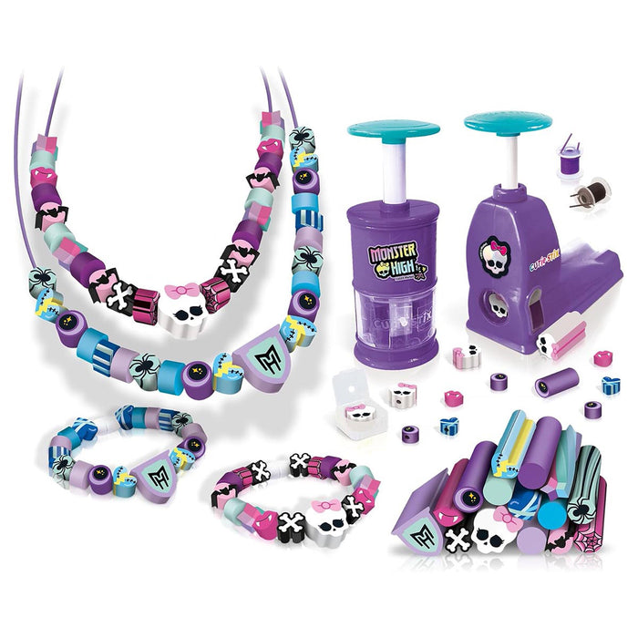 Creative kids can immerse themselves in a world of Monster High with this creation set, making their own unique bracelets and necklaces. With a choice of ghoulish bead Stix, use the tools to safely cut and core them into fang-tastic beads then thread them to create Monster High themed jewellery. Have fun mixing and matching the beads to make fun combinations! It is a great activity to stimulate creativity and imagination. Includes 1 x Cutting Unit, 1 x Coring Unit, 2 x Cutting Moulds, 15 x Cutie Stix, 1 x Push Rod, 2 x Elastic Threads Spools, 8 x Clasps, 1 x Stick, 1 x Sticker Sheet and Instruction Leaflet.