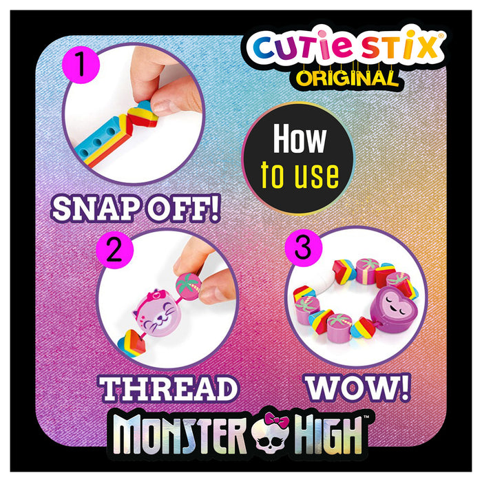 • Make unique ghoulish bracelets and necklaces with the Cutie Stix Original: Monster High Creation Set.