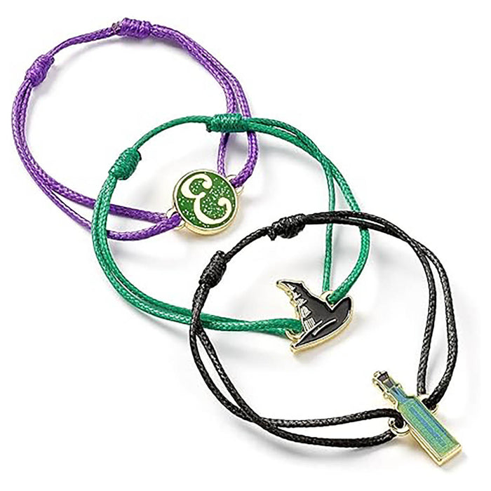 • Includes 3 bracelets featuring a Elphaba's iconic hat, elexir bottle and E initial charm.