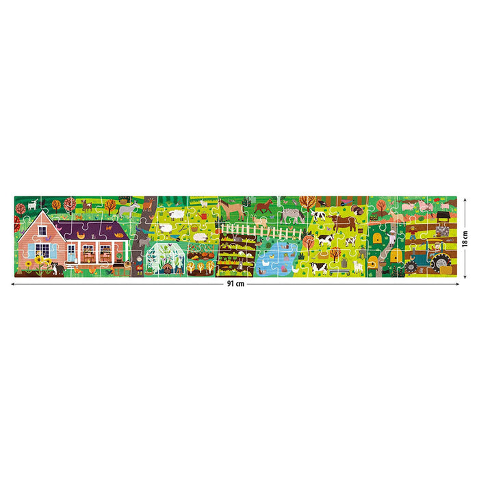 A long puzzle depicting an adorable farm scene with more than 100 removable stickers. Put the pieces together, study the shape of each object, find the matching sticker and stick it in the right place!