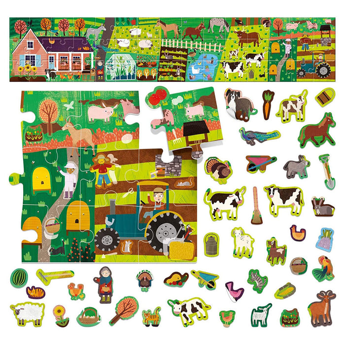 • Discover an enchanted world with the Headu Farm & Stickers Puzzle Set.