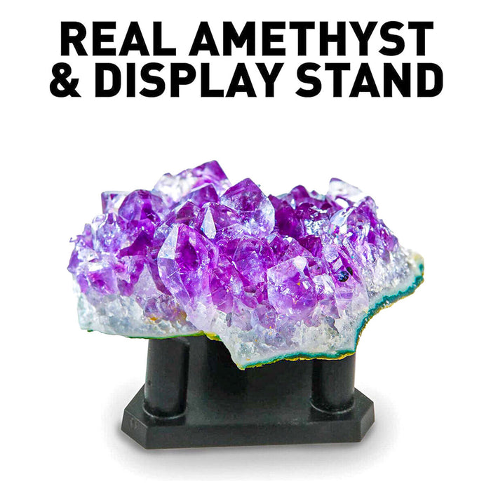 • Includes a real Amethyst crystal for your rock collection along with a stand!