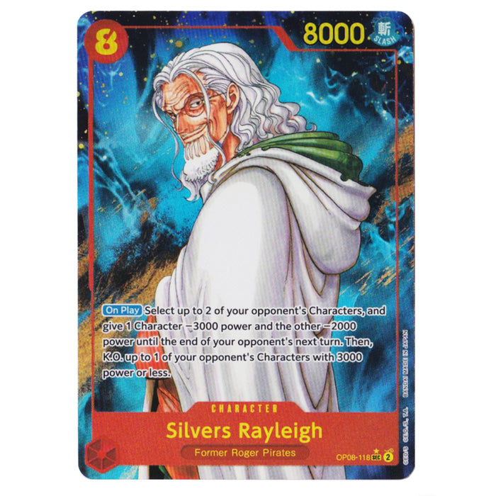 Silvers Rayleigh, who was the right hand of the Pirate King finally joins the battle! You'll also be able to make new decks themed around the Whitebeard Pirates, Animal Kingdom Pirates, and Big Mom Pirates! Silvers Rayleigh's powerful effect allows him to decrease the power value of the opponent's character card, then KO up to 1 character card with a power value below 3000!