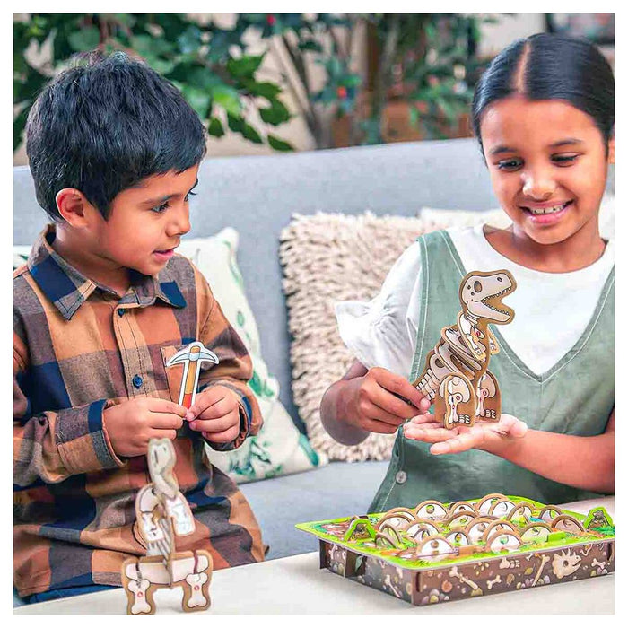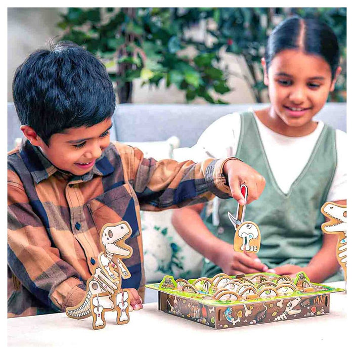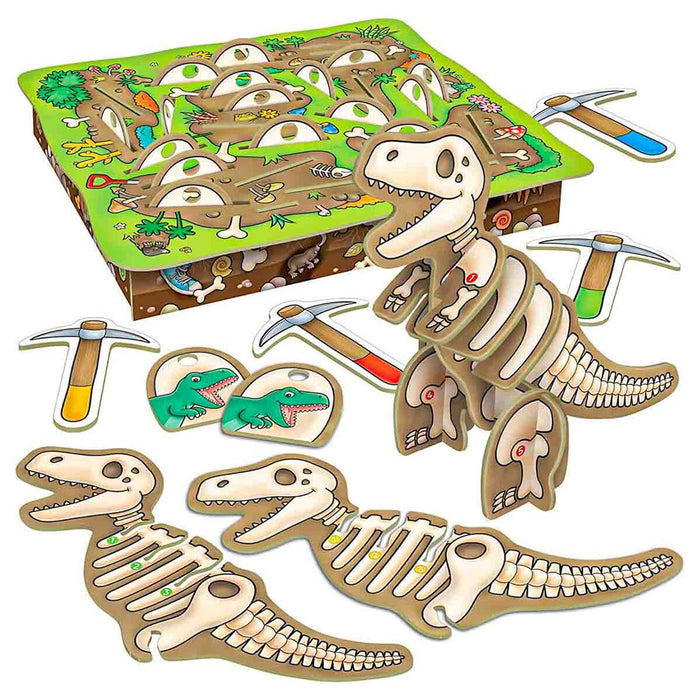 Orchard Toys Dinosaur Dig is the game where you race to find all the bones to build your 3D dinosaur! Each player selects a pick colour, which correlates to the colour of their dinosaur. Players take it in turns to hook a dinosaur bone from the 3D board. If the colour on the number matches their pick colour, they can add the piece to their dinosaur body! But beware, if you hook a T-Rex card, you’ll lose a piece of your dinosaur back to the board! The winner is the first player to complete their dinosaur. Players will have lots of fun developing matching and memory skills and encouraging development of dexterity in this exciting 3D prehistoric game.