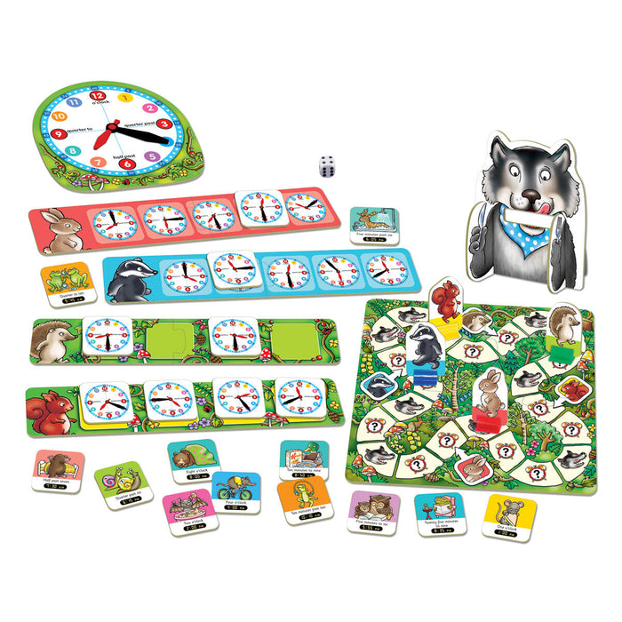 • Players race around the board matching the times to the central clock – but watch out for the hungry wolf.
