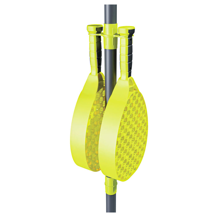 The high energy game Swingball Pro All Surface is for those who are a little more competitive than the rest. Coming with a steel pole, designed for durability and the most competitive players, standing at an adjustable height of 1.8 metres it includes a power play spiral top and a real tennis ball, able to withstand powerful hits. Thick power bats come with non-slip grips allowing players to get lost into the heat of the game, and when the game is over the loser can hang their bat up on the convenient bat holder. New and improved the all surface base contains an integrated handle for easy portability and a water plug to avoid any spillages when filling up your base. The All Surface base converts to become a handy carry case to pack everything away making it easy to take wherever you go.
