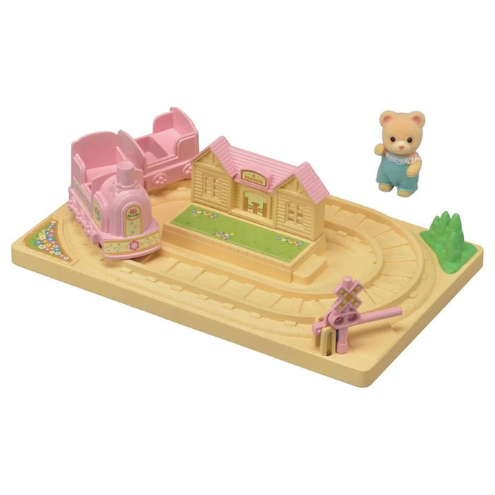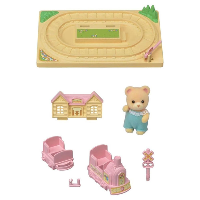 Baby Choo-Choo Train is a train set with tracks, and includes one Bear Baby figure. This playset is immediately ready for play as a stand-alone product. The two train cars can be pushed along the tracks by hand. One baby figure can fit in each train car. There's also a railroad crossing with a movable gate. Contents: Station, Railway, Train, Passenger Cart, Connector, Crossing Gate, Crossing Signal, Bear Baby (a total of 8 pieces).