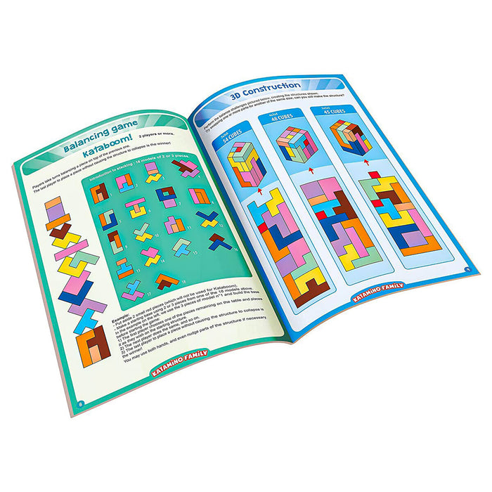 Katamino Family features the 2-player game play developed in our Winomino and Katamino Duo products, an activity guide filled with puzzles and activities for children (as young as age 3) and special 2-player game cards which have an easy and hard side... allowing two players with different age/skill levels to compete in head-to-head matches with a mild handicap for the stronger player.