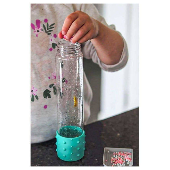 Enjoy a soothing sensory experience with this delightful Calm Down Bottle by Jellystone Designs. The award-winning DIY Calm Down Bottle allows you to create a personalised sensory experience for your child using the creative elements provided in the kit and simply adding water to bring the magic to life. This Calm Down Bottle offers a great sensory experience. Not only is it a toy, but the Calm Down Bottle also offers therapeutic benefits. Parents, teachers, and therapists recognise its ability to help children self-regulate their breathing and improve focus. Whether your child needs a moment of tranquillity, a sensory distraction, or a calming activity, the Calm Down Bottle is here to assist. The bottle can be easily refilled and reused, providing endless creative options. Measuring 21 x 5cm in diameter, it's the perfect size for little hands. Cleaning is simple with sterilisable silicone caps that can be placed in the dishwasher or washed with warm soapy water. While the choice to refresh the contents is yours, emptying and refilling every few months is recommended.