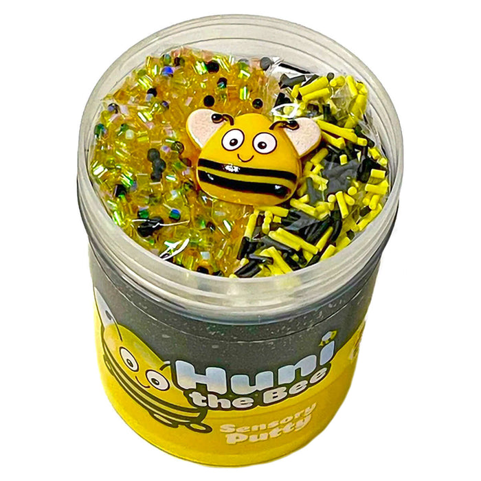 Huni the Bee Sensory Putty is a buzz-worthy addition to your sensory play collection! This striking black and yellow putty is as vibrant as it is visually appealing, creating a captivating sensory experience. Gently scented with honey, this sensory putty is a true delight. Experience the unique butter slime texture of Huni the Bee Sensory Putty, offering a thick and holdable consistency that is both satisfying and fun to play with. Topped with bingsu beads and clay sprinkles, this putty provides a tactile and interactive sensory experience that will keep you engaged for hours on end. Comes with a collectible Honey the Bee charm, adding a touch of charm and whimsy to your sensory playtime.
