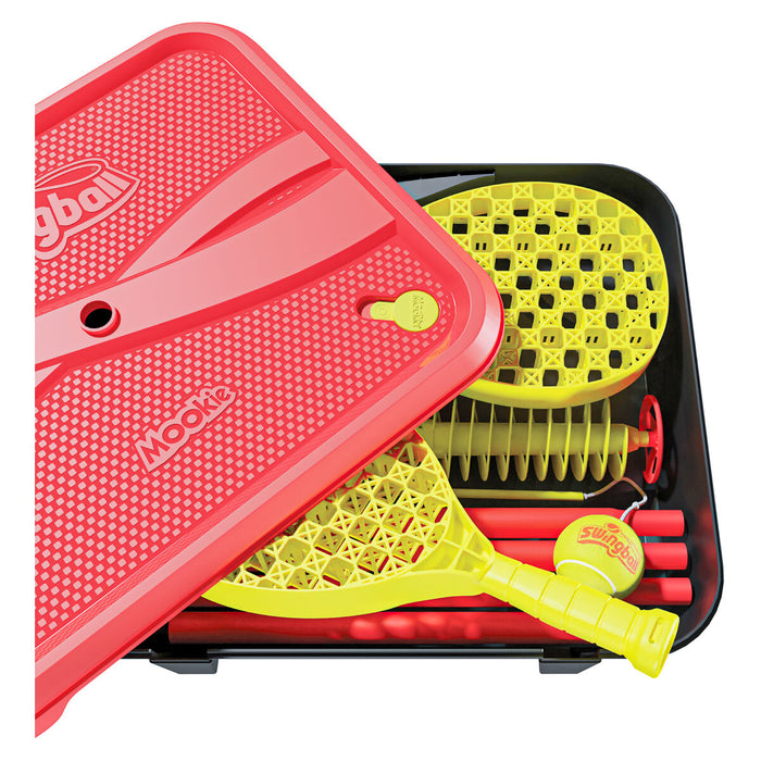 A hit with families for generations, the Swingball Classic All Surface is the game where you compete to get the ball to the top or bottom of the spiral to win. It comes with a real tennis ball, 2 championship bats, and a height adjustable pole up to 1.65 metres. New and improved all surface base contains an integrated handle for easy portability and a water plug to avoid any spillages when filling up your base. The All Surface base has balancing feet for stable gameplay and converts to become a handy carry case to pack everything away making it easy to take wherever you go. Swingball isn’t just for the back garden; with the all surface base you can play anywhere on any surface. Simply fill the base with sand or water and then you are ready to go.