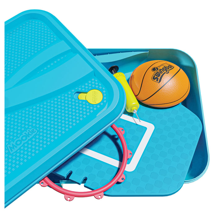 The Swingball First Basketball All Surface is the perfect starter hoop for kids learning to play basketball. It has a unique championship all surface base enabling you to store all the specially designed components with ease. When you are ready to play just carry this lightweight case into the garden, to the beach or park and you can easily set it up. Includes a lightweight basketball, pump and is height adjustable up to 1.53 metres.