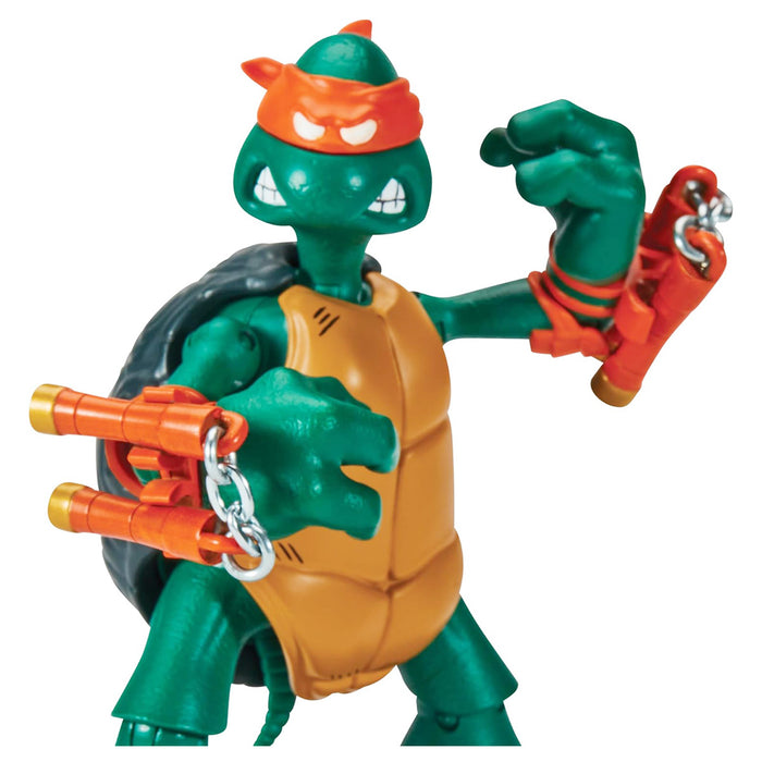 • Michelangelo comes with his signature weapons, ready to fight any enemy.
