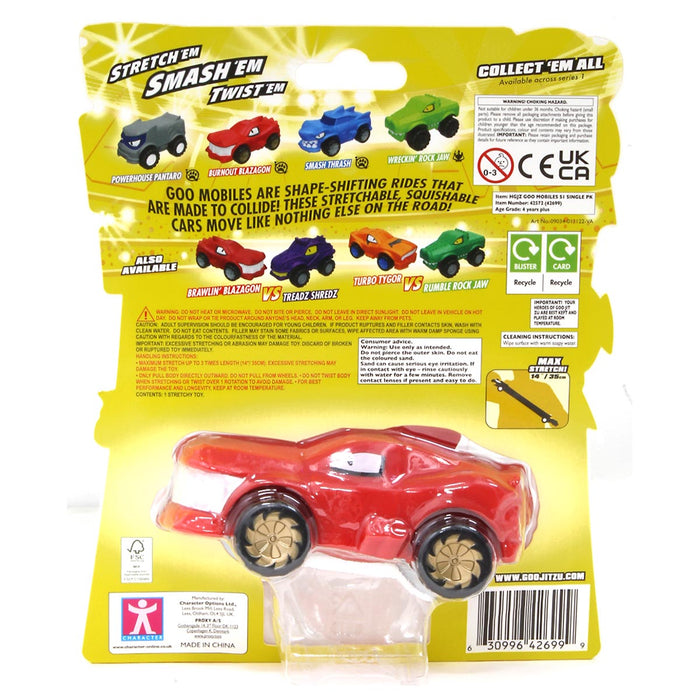Heroes of Goo Jit Zu Goo Mobiles are shape shifting rides made to collide! These stretchable, squishable cars move like nothing else on the road! Stretch them! Smash them! Twist them! The Burnout Blazagon can stretch up to 3x its size! Collect them all - Burnout Blazagon, Powerhouse Pantaro, Smash Thrash and Wreckin’ Rock Jaw!