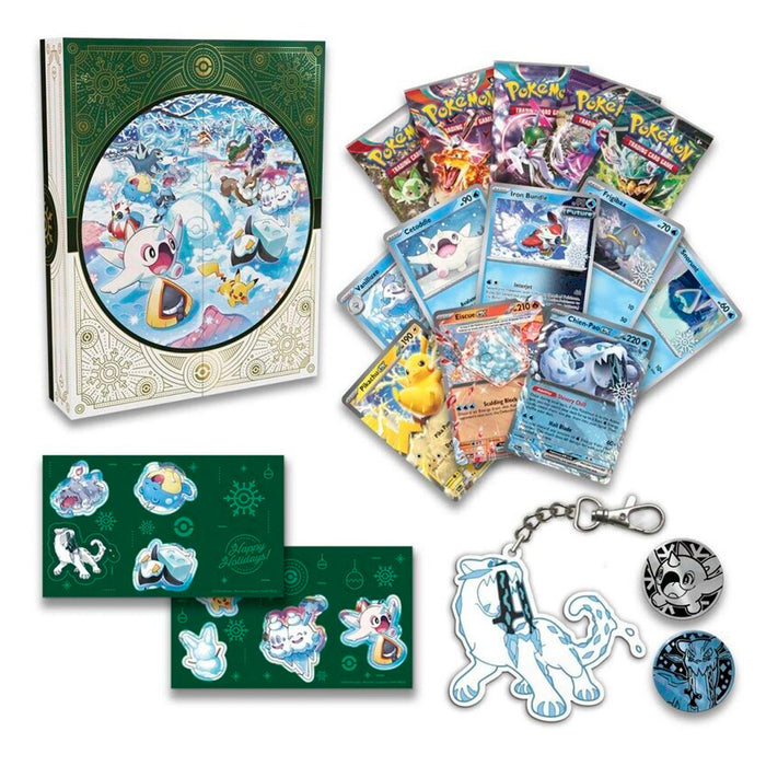 • Includes 8 foil Pokémon TCG cards with a festive stamp.