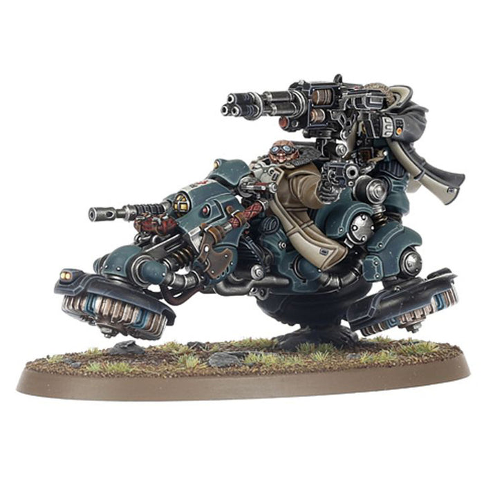 The Kin are a clone race of resilient and pragmatic warriors, who together form the ancient Leagues of Votann. Given wisdom and purpose by their ancient Ancestor Cores, armed and armoured by the pounding pistons of the forge, they scour the galaxy for the resources to expand their works and overcome any foe. Hernkyn Pioneers roam the battlefield on magna-rail bikes, scouting a path for doughty Hearthkyn Warriors and augmented Cthonian Beserks to secure their objectives – guided by battle-tested Kâhls such as the legendary Ûthar The Destined.