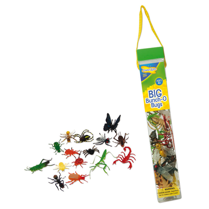 Young insect lovers will treasure the Big Bunch O' Bugs anatomically detailed butterflies. insects and arachnids. Includes 18 giant-sized beetles, flies, spiders and much more. These colourfully detailed bugs are made of sturdy, flexible plastic and are a great teaching tool. So realistic, you won’t want to leave these creepy crawlies in unexpected places! Big Bunch ‘O Bugs come in a resealable tube that doubles as a storage container.