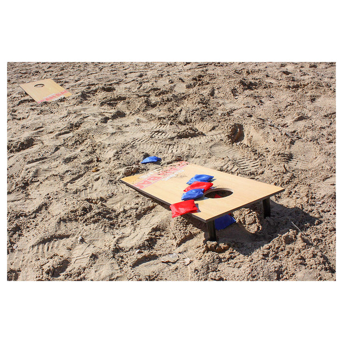 Toss the beanbags onto the boards and collect the most points! If you manage to throw the beanbags through the hole in the board, you get more points!