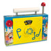 Watch whimsical scenes scroll across the window of the brightly coloured case.