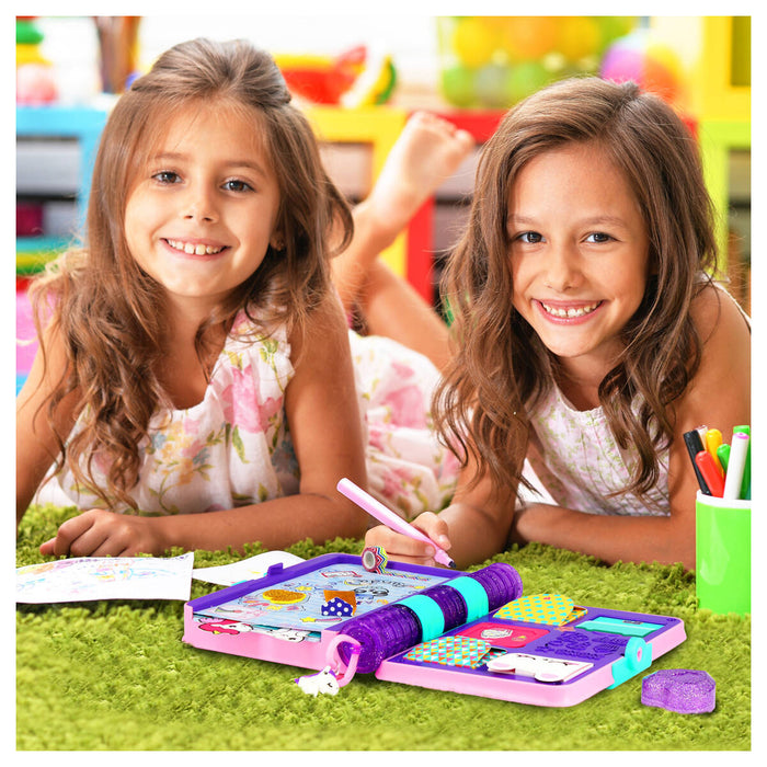 What better way to store your secret writing, drawings and doodles than this brilliant Fun Lockets Secret Journal. But there’s more to the contents than meets the eye… Discover hidden keys and mysteries inside. First, find the key to unlock your secret journal. Discover more keys in hidden compartments along the way. Design your look and create your book with the glittery pencil, stickers and stencils. Create stories on the notepad. Includes unicorn charm keyring. Attach it to your journal, rucksack or bag. Use the journal as a diary to encourage creativity and mindfulness. This set is chock FULL of activity… Contains: lockable journal with secret heart box, note pad, glittery pencil, 4 keys, keyring with unicorn charm, 80 plus stickers on 17 sheets; memo pad, bookmark, 2 stencil shapes, 2 masking tapes, a rubber, 3 paper clips, 2 secret messages and a user guide. Secret Journal size: W161mm x H192mm x D56mm approx.