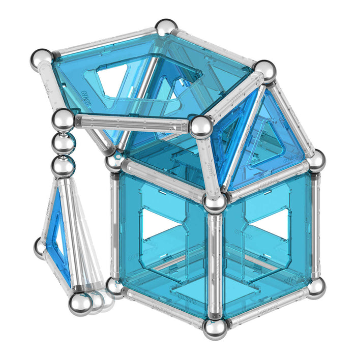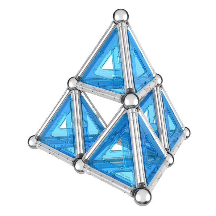 Swiss made Geomag PRO-L is the evolution of the classic magnetic construction system and uses the power of powerful magnets to allow you to build even more spectacular structures. The polarity indicator, which is shown on the rods, helps you to understand the full potential of magnetism. The silver rods and transparent panels give Pro-L a high-tech futuristic look! This STEM product is designed to encourage fine motor skills, learning by playing and creativity and imagination. Geomag is the original magnetic construction toy.