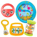 Celebrate your little one's birthday with Halilit Baby's 1st Birthday Band Toy, A set with 5 instruments for young children to develop their hand-eye coordination and learn music: The set consists of; a Rainbow Shaker (9cm) that the child can shake and flip to watch the marbles come down and listen to the sound of the falling rain. A ball rattle (11cm) with handle for young children to easily grab and shake it. Bells (12cm) with handle for easy grabbing and shaking. An Ocean Drum that will reproduce the sound of the waves when the child moves the little coloured marbles. A Clip Clap rattle that is easy to grab and shake to produce different sounds. Bright colours and super sounds make this a perfect introduction to early year's music making, whilst also encouraging creativity. Comes in a sturdy gift box with plastic carry handle.