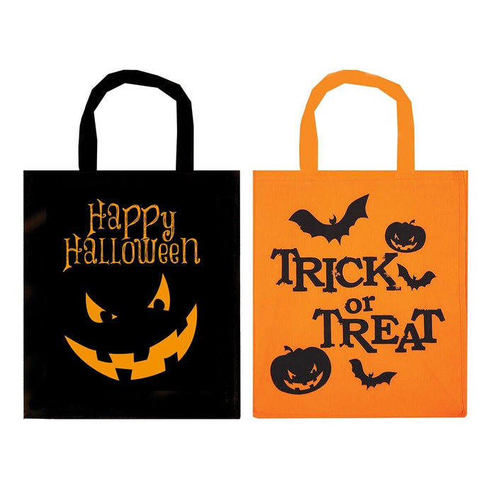 This Halloween tote bag made from fabric is the perfect size for holding treats or little gifts. Featuring two designs in black and orange colours - 'Happy Halloween' or 'Trick or Treat'.