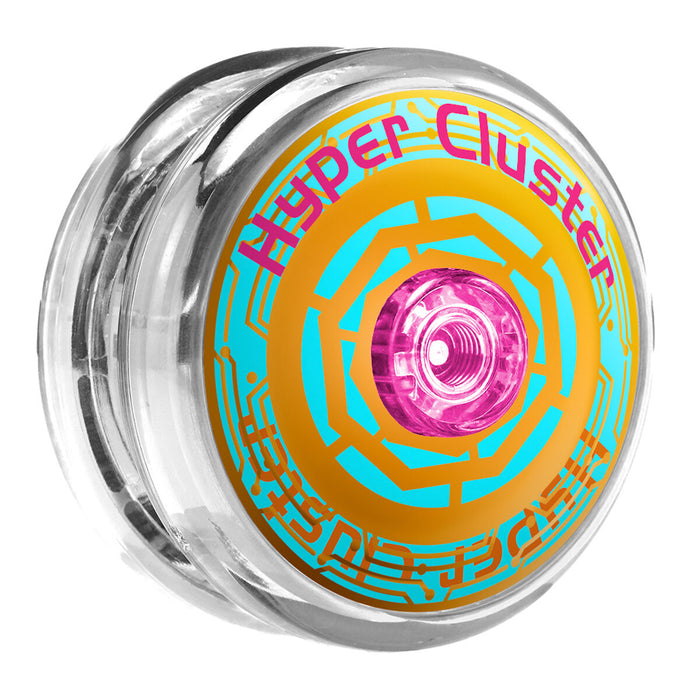 CRANK IT YOUR WAY! with Hyper Cluster the high performance yo-yo system that’s as unique as you are. Customize with different Skins and Cores to express your style and tailor performance to your personal trick style.
