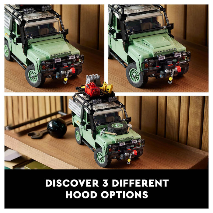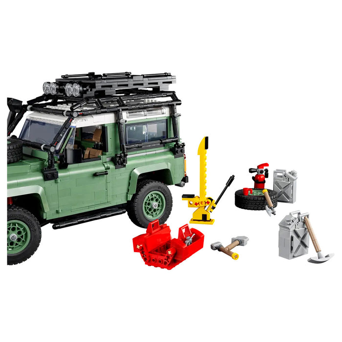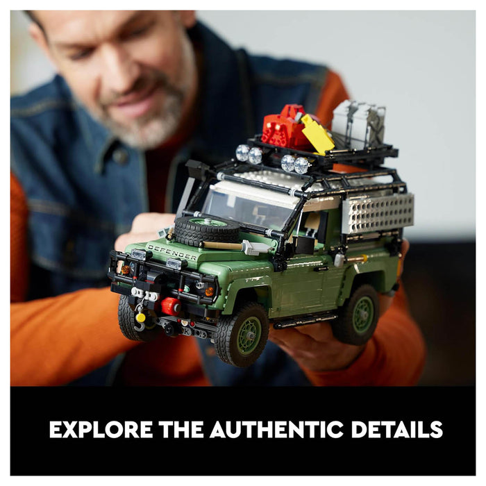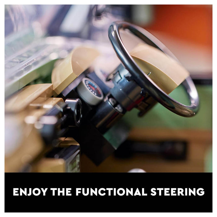 Fuel your creativity with the LEGO Icons Land Rover Classic Defender 90 (10317). This immersive building project for adults lets you build one of the most famous vehicles in off-road history before taking it for a spin. Staying true to the original 1984 model, this car collectible is sand green with a white roof, black wheel trims and a brown interior. It features functional steering, working suspension and a choice of 2 engines. Car-lovers can keep the basic vehicle as a Land Rover Estate or customise it for an epic off-road adventure using accessories such as a roll cage, fire extinguisher, roof rack, an engine snorkel and traction boards for crossing muddy terrain.
