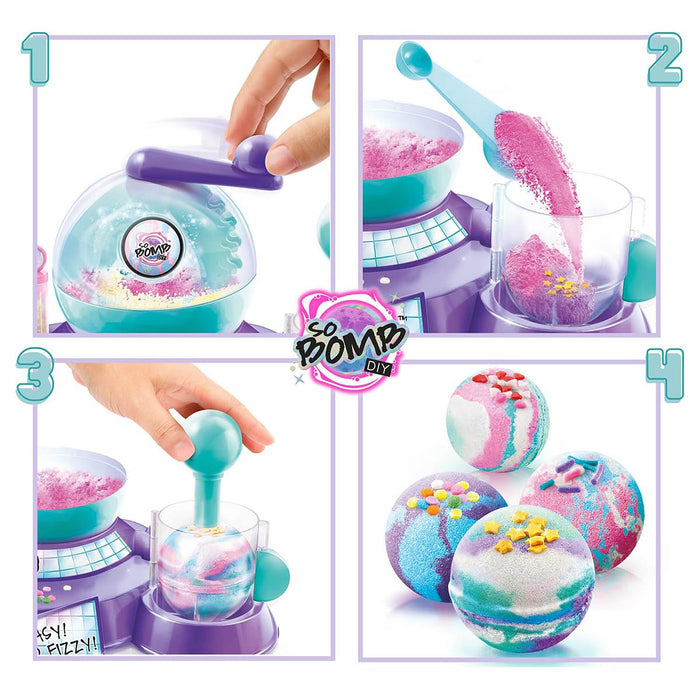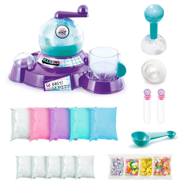 • Includes bath bomb factory machine, moulds, and ingredients to create 10 marbled bath bombs.