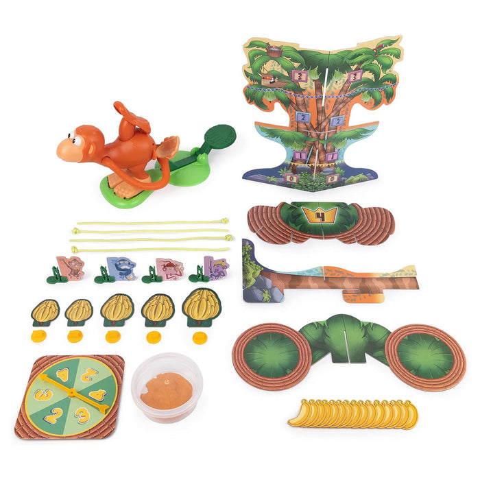 If a monkey sees, then a monkey poos. And in this game, so will you. Everything is BANANAS in this funny game of tree-climbing, poo-flinging, banana-hungry monkeys! Spin to see how many flings you get, then load poo into the Monkey Flinger and launch away. Aim at the tree to collect banana tokens, then climb up your vine. The 1st monkey to get to the top wins! Knocking the entire tree over is called a Banana Blowout, collect 1 token and your turn ends. Kids will love flinging and climbing - you cannot go wrong by bringing this game to a party.