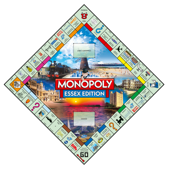 MONOPOLY, the great property trading board game finds its home in beautiful Essex: the ancient Saxon county. Journey around the gameboard and explore attractions including: Southend Pier, Copped Hall, Epping and Layer Marney Tower. Don’t forget to stop off en route at Audley End House or the County Hall, Chelmsford or why not partake in some retail therapy at Thurrock and Lakeside Shopping Centre, and also be sure to stop at New Street, Braintree.