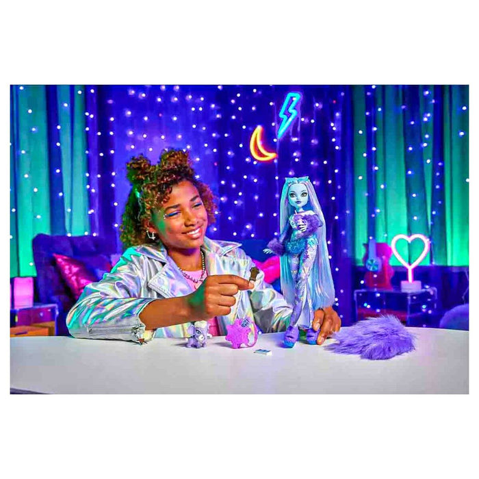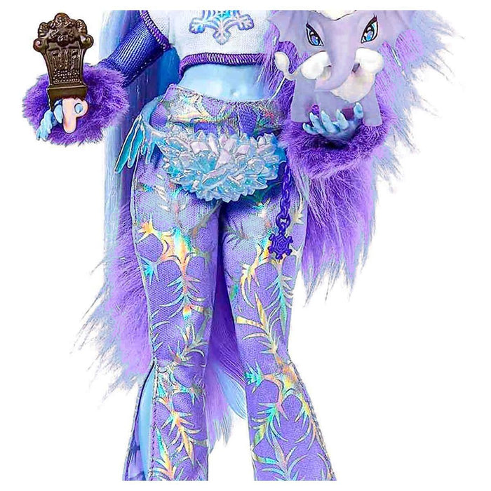 Monster High introduces Abbey Bominable, the daughter of the yeti! This charismatic and friendly monster hails from the cold peaks of the Himalayas and has the power to control ice and snow. Abbey Bominable doll has long pastel shimmer hair and wears a cropped tee with mesh sleeves and faux-fur cuffs. Styling pieces like a furry scarf, icicle-inspired belt bag, snowflake backpack, and frosted glasses with matching earrings add gore-geously glam touches to her lurk. Her snowflake-printed pants have hem slits, while her platform shoes are icy cool. Abbey Bominable doll comes with lots of spooktacular accessories too, including her pet wooly mammoth Tundra!